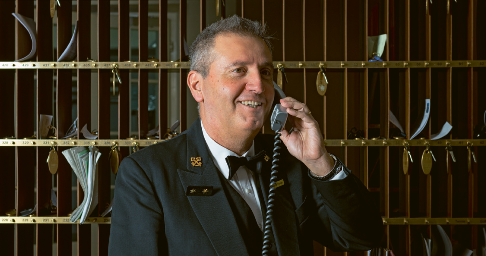 viel organisiert und viel gemeistert, auch wenn er davon überzeugt ist, dass sich 87 Prozent aller Probleme in einem Hotel von selbst lösen. Seine Kraft ist seine Ruhe, beeindruckend sind auch seine freundlich-ironische Art und sein Poker-Face. Er kann es schnell ablegen und den Gästen, die er seit Jahren beim Namen kennt, im richtigen Moment in die Augen schauen oder einfach nur zuhören. In die Karten blicken lässt er sich nicht, aber Karten besorgen, Violinisten, Rosen oder ganz generell Wünsche erfüllen, das kann er. Ein bisschen stoisch ist er, immer bleibt er gelassen, weil er das Unmögliche bereits kennt. -